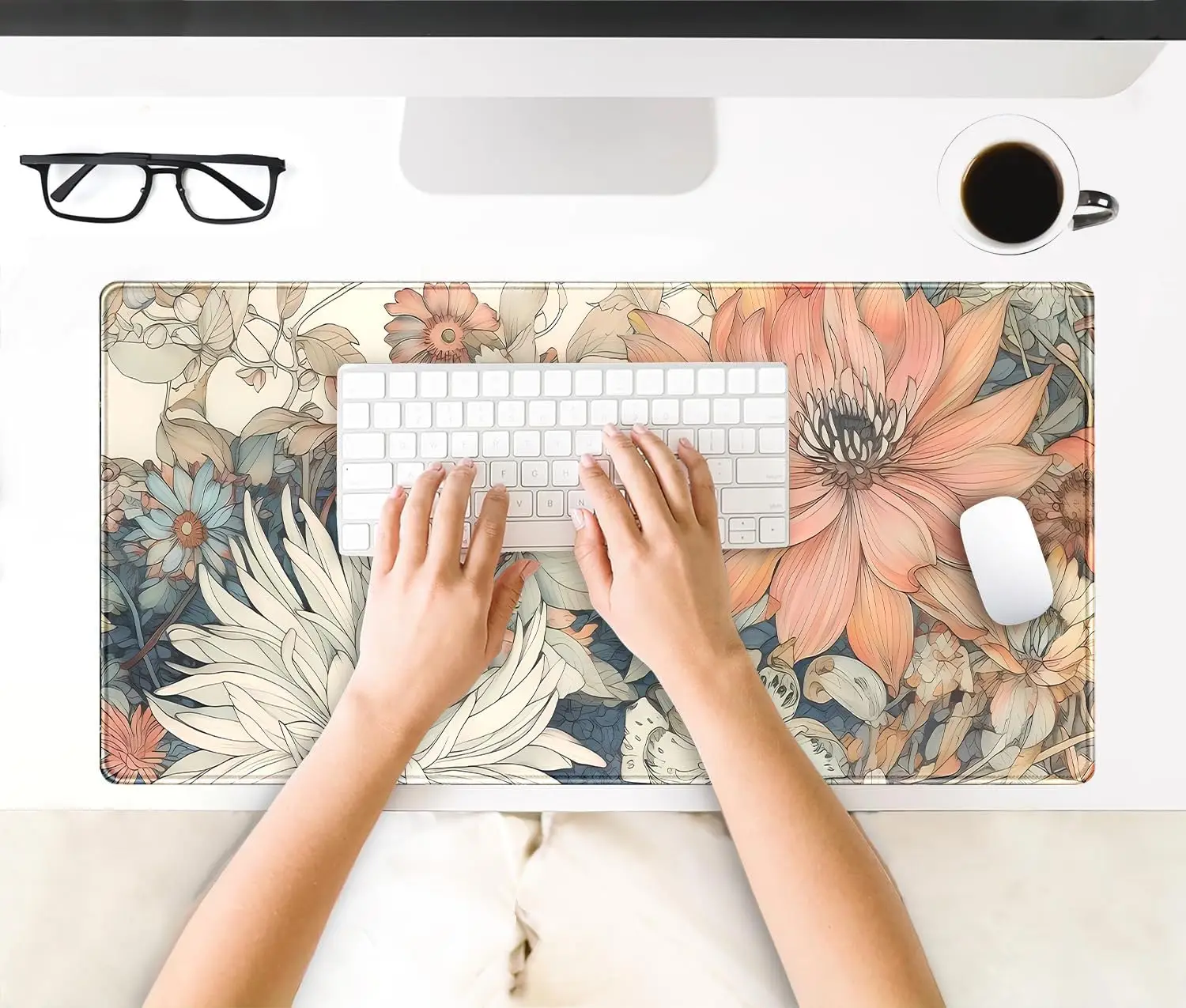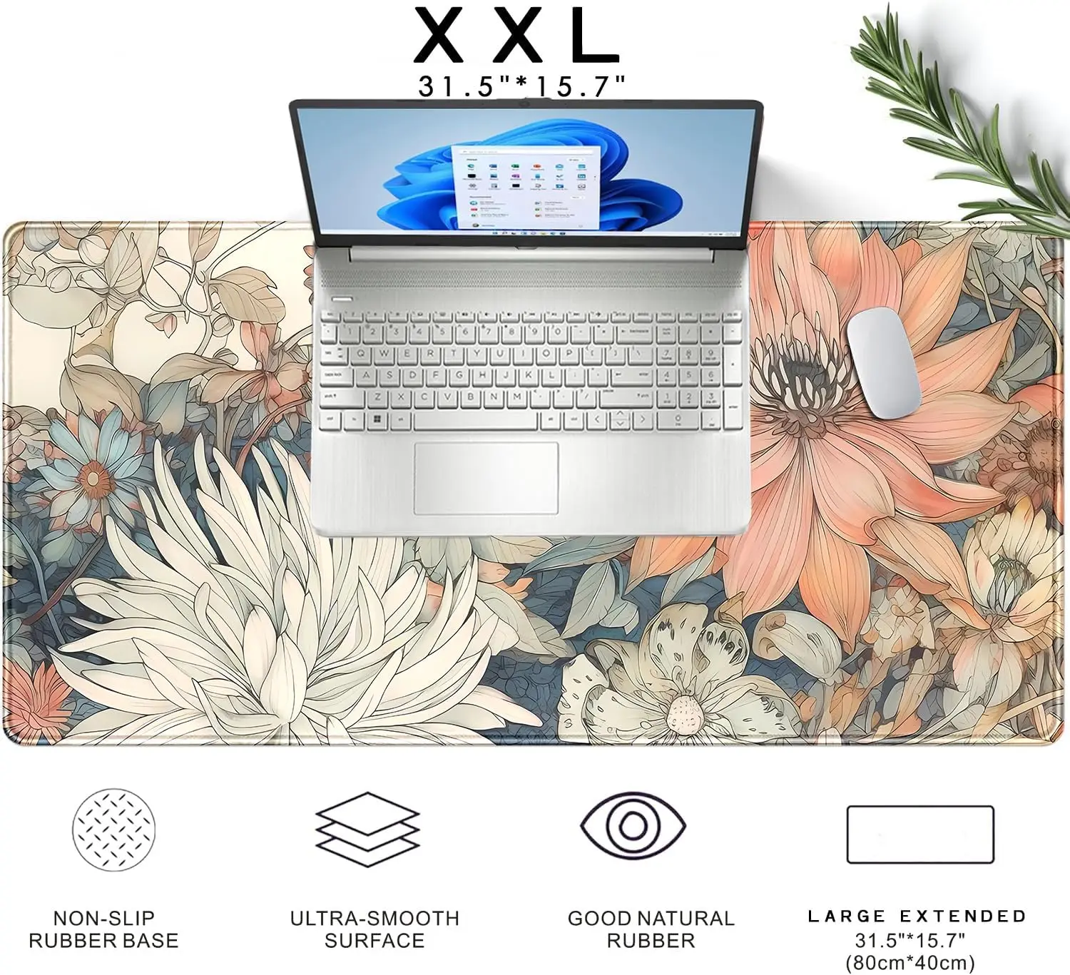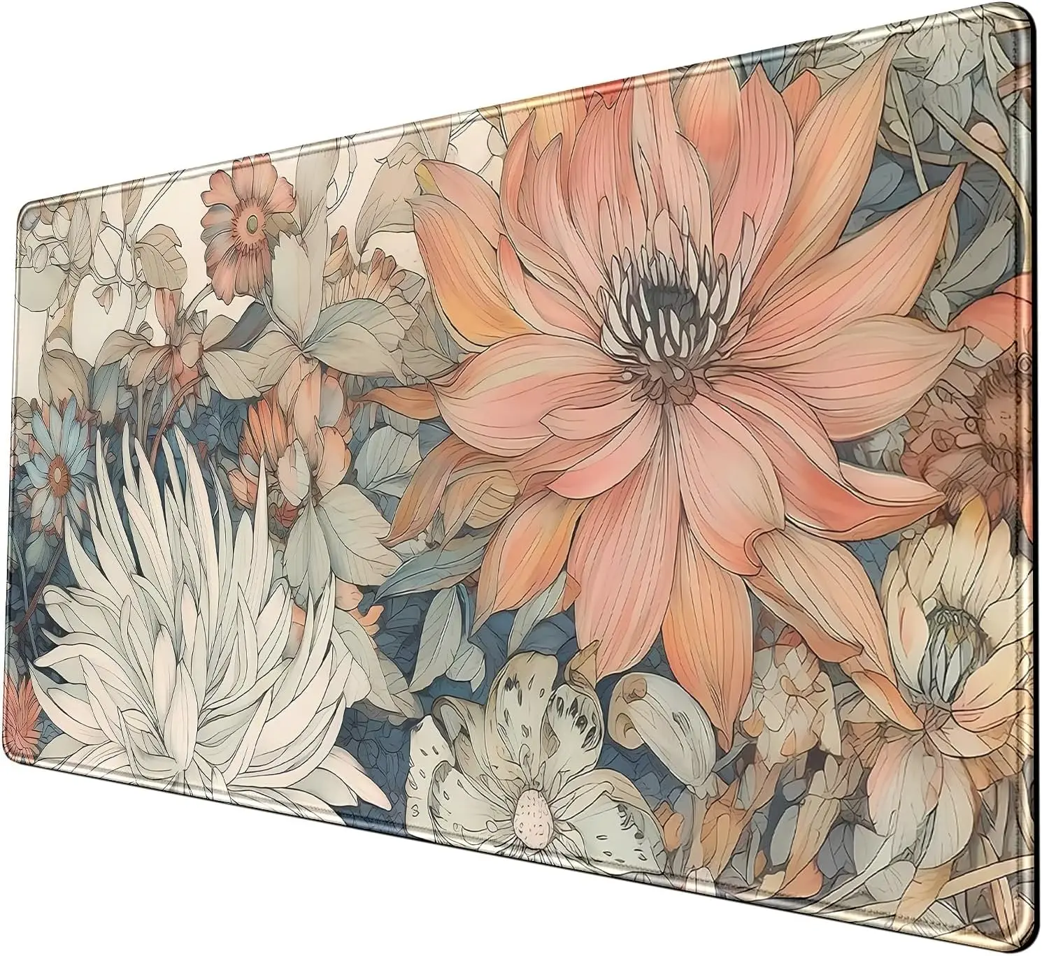 Japanese Floral Desk Mat Boho Aesthetic Flower Desk Matt for Desktop Large Gaming Mouse Pad for Deskpad Keyboard Mat Desk Decor